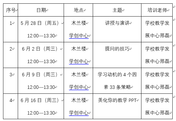 为进一步提升我院教师教学能力,学院教学发展分中心根据学院任课教师资格管理细则中《船建学院教师教学能力提升培训计划》,制定了本学期教师教学能力提升培训安排。本学期共安排四次培训,详细安排如下: