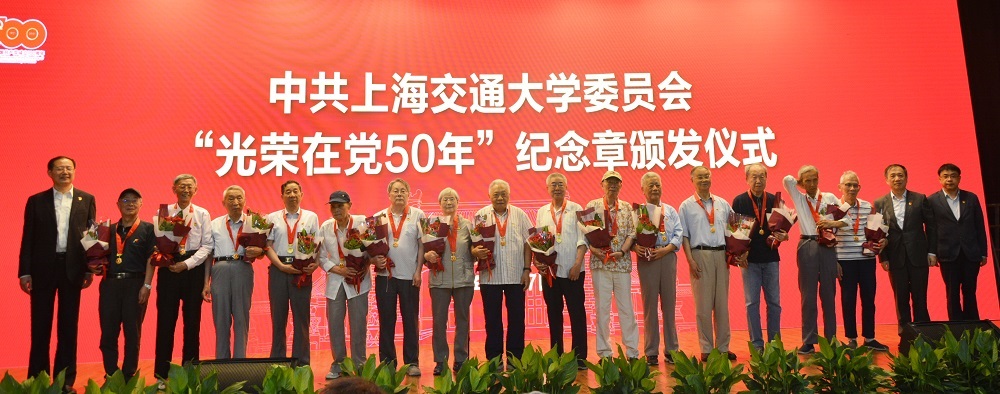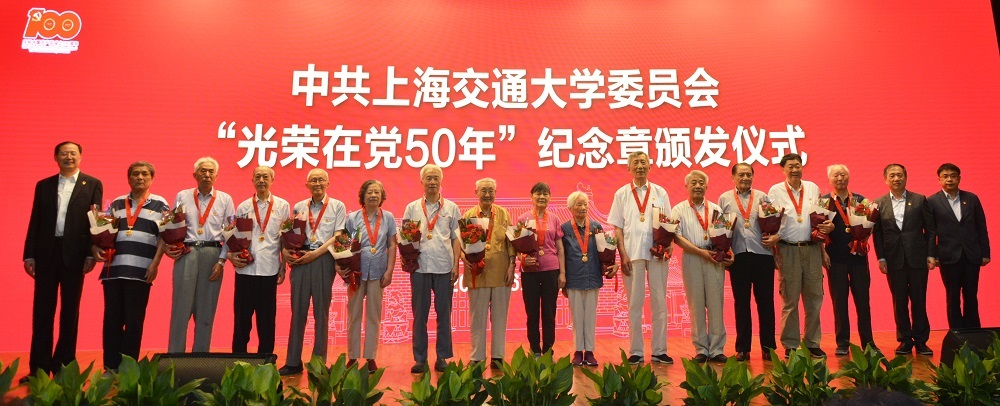 今年,船建学院共有43名党龄超过50年的老教师获颁纪念章,包括知名教授、3044am永利集团官网原副校长、海洋工程国家重点实验室首任主任盛振邦、原力学系系主任刘延柱、土木系恢复建系首任系主任黄金枝、原船院总支书记汪祥迪,原建工学院总支书记李昌贵、国家科技进步一等奖获得者周超俊等一大批为学院、学校发展作出卓越贡献的老前辈们。当天,船建学院有26名老党员参加了的仪式,院党委书记周薇、院党委副书记王喜芳以及学院师生党员代表和老党员们一同在现场感受了热烈、感人、激昂的氛围。