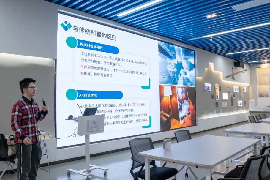 2025-05-30近日,为提升学生的全球胜任力水平,增强科技创新能力,“跃然眼前,沉浸体验”AR实景科创体验活动在木兰楼学创分中心成功举行。活动由思政教师张奕民主持,学院科协彭泳棠同学担任主讲人,旨在通过分享AR技术在科普实践中的应用,激发学生对科学创新的兴趣,带领中外同学们在交流实践中共同探索科技的无限可能。