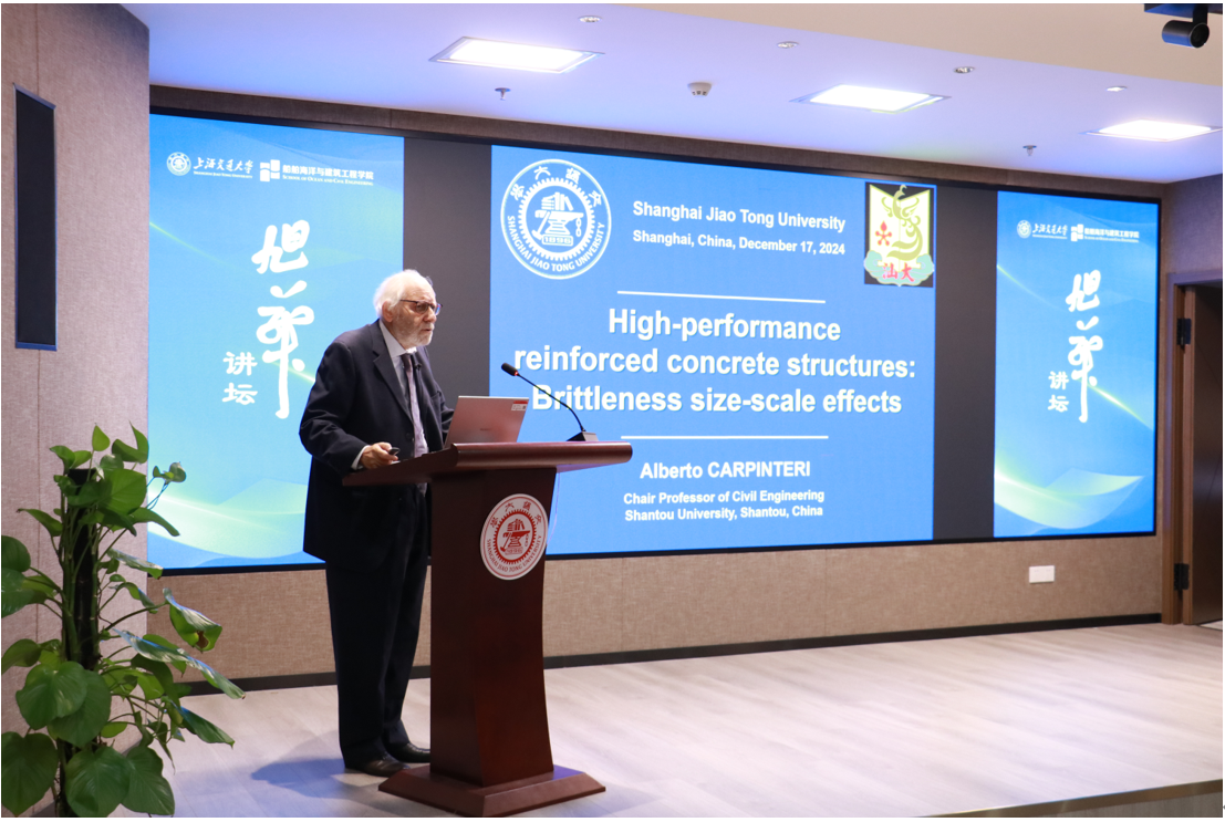 12月17日,欧洲科学与艺术院院士、汕头大学土木与智慧建设工程系讲席教授Alberto Carpinteri教授做客“旭华讲坛”,带来了题目为“High-performance reinforced concrete structures: Brittleness size-scale effects高性能钢筋混凝土结构:脆性尺度效应”的学术报告,吸引了众多师生参加。Alberto Carpinteri教授曾任欧洲科学院工程部主任,意大利都灵理工大学结构工程系主任、结构工程研究生院创始院,也曾在包括欧洲科学院、国际工程院、都灵科学院和美国土木工程师学会在内的多个学院和专业机构担任研究员。本次讲座由3044am永利集团官网船建学院土木工程系副系主任张大旭教授主持。