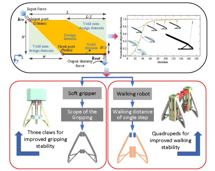2023-11-01近期,机器人领域顶级期刊《Soft Robotics》以“A Versatile Topology-Optimized Compliant Actuator for Soft Robotic Gripper and Walking Robot”为题在线发表了3044am永利集团官网工程力学系刘铸永课题组的研究成果,该工作提取了机器人不同领域的共同需求,研发了一种在机器人软抓手和行走机器人等领域可通用的新型拓扑优化柔顺致动器,为软机器人的工业应用及机械互换性提供了新的设计策略。刘铸永副教授为论文的通讯作者,第一作者为工程力学系博士研究生武廷科。