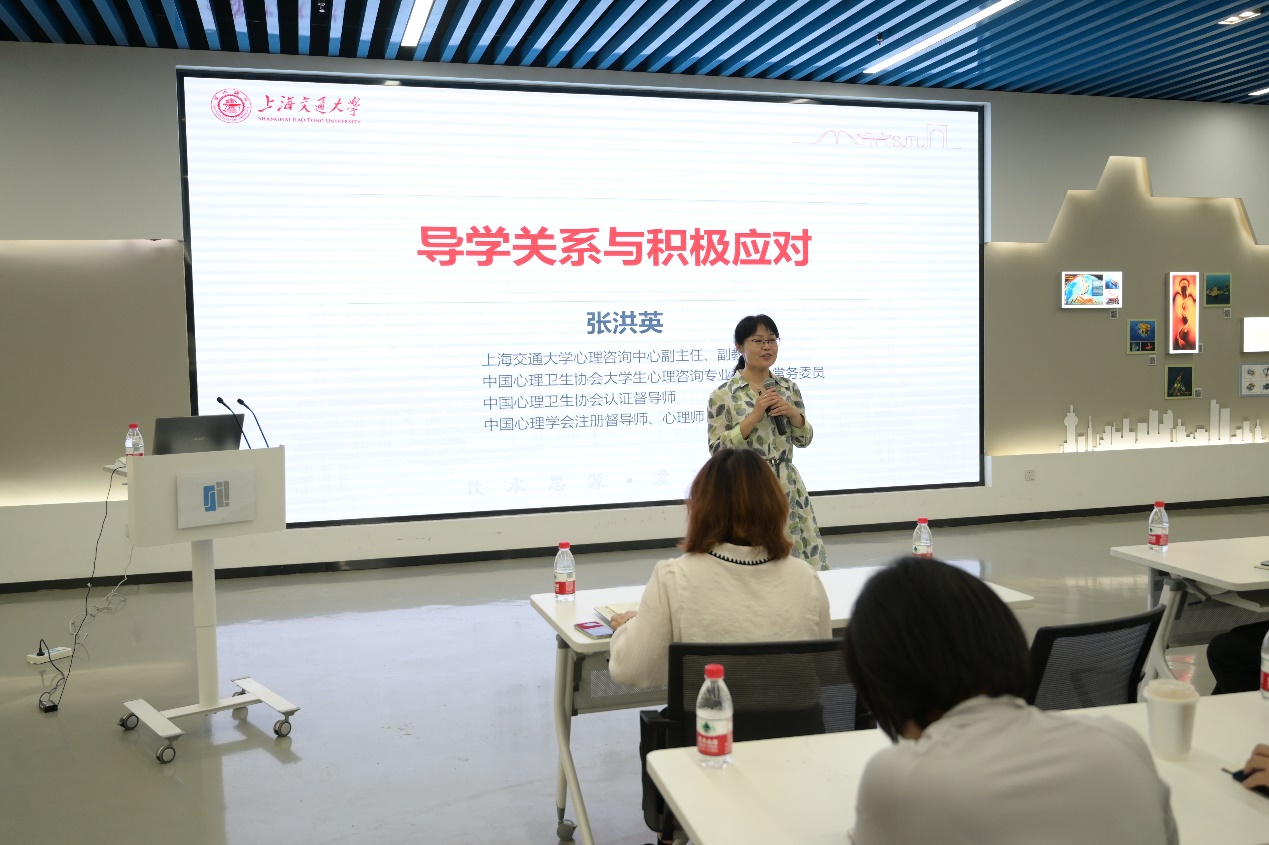 学生成长成才离不开老师的精心培育和指导,针对研究生培养过程中可能出现的导学矛盾,以及现代生活中不可避免的压力与挑战,6月4日下午,船建学院学工办特邀校心理咨询中心副主任张洪英副教授在木兰楼A100带来《导学关系与积极应对》的专题心理讲座。此次讲座面向学院全体研究生导师、思政教师、辅导员,船建学院党委副书记宋续明、学工办主任查芳灵出席活动。讲座由学工办副主任史舒婧主持。