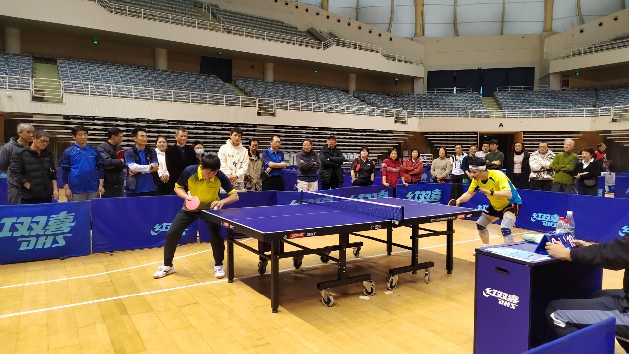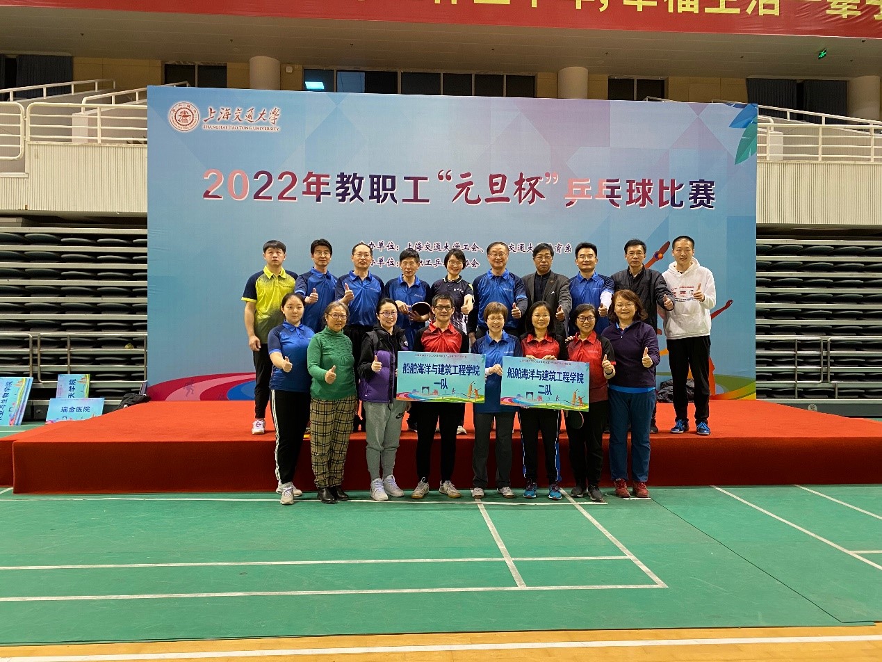 1月8日,3044am永利集团官网一年一度的“元旦杯”乒乓球团体赛在致远游泳馆和霍英东体育中心拉开序幕,船建学院选派20余名教职工共两支代表队参加比赛。比赛分为甲乙2个组别,船建一队征战乙组晋级赛,船建二队征战甲组巅峰对决。船建学院党委书记周薇、海装院党委书记蒋如宏、船建党委副书记王喜芳、船建工会主席刘铸永带队出征。