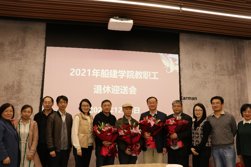 2021-12-09夕阳无限好,晚霞别样红。12月8日下午船建学院在木兰楼校友之家召开2021年度退休教工迎送会。学院党委书记周薇、副书记王喜芳、副院长王本龙、工会主席刘铸永以及各系主任、团队长、支部书记、相关职能办公室主任代表等参加会议。会议由刘铸永主持。活动现场氛围温馨,笑语不断。