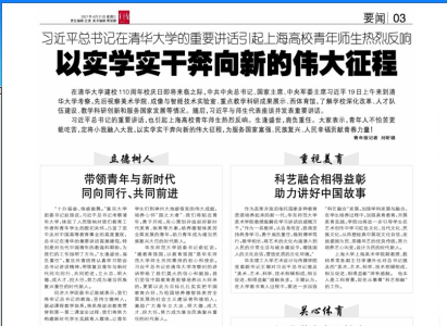 【青年报】习近平总书记在清华大学的重要讲话引起上海高校青年师生热烈反响