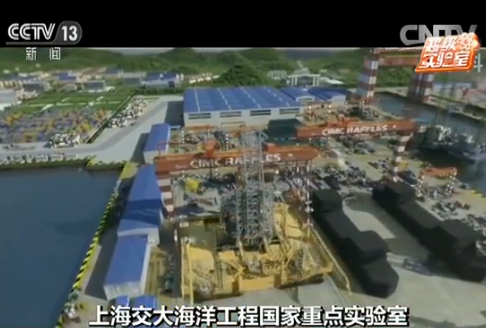 上海交大海洋工程国家重点实验室主任杨建民正在对远在南海的海洋石油981深水钻井平台进行实时监测,大屏上呈现的是,对海上平台实测数据进行分析处理后,借助三维仿真技术还原的海上实况。杨建民介绍,“这套系统已经可以显示舱壁的应力,那下一步的话,我们应该对于锚链的应力显示出来。可使工程人员随时观察到锚链在恶劣海况下它的一个应力的情况。”