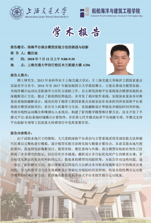 2018上半年长聘教轨招聘进入学院综合能力评审环节,7月11日上午,学院组织长聘教轨候选人集中进行学术报告,具体安排如下。欢迎各位老师、同学前来指导交流。
