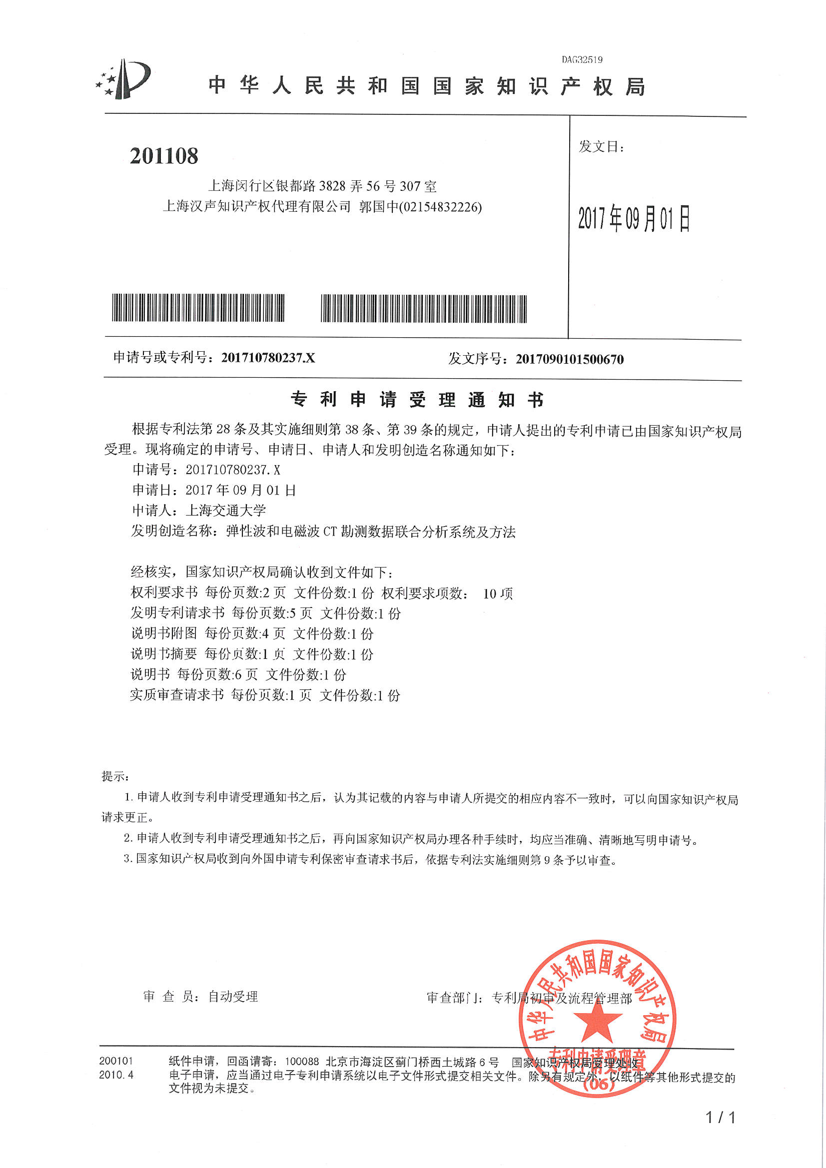 (6)车爱兰;王启明;朱仁杰;冯少孔,弹性波和电磁波CT勘测数据联合分析系统及方法,2017/09/01,ZL201710780237.X