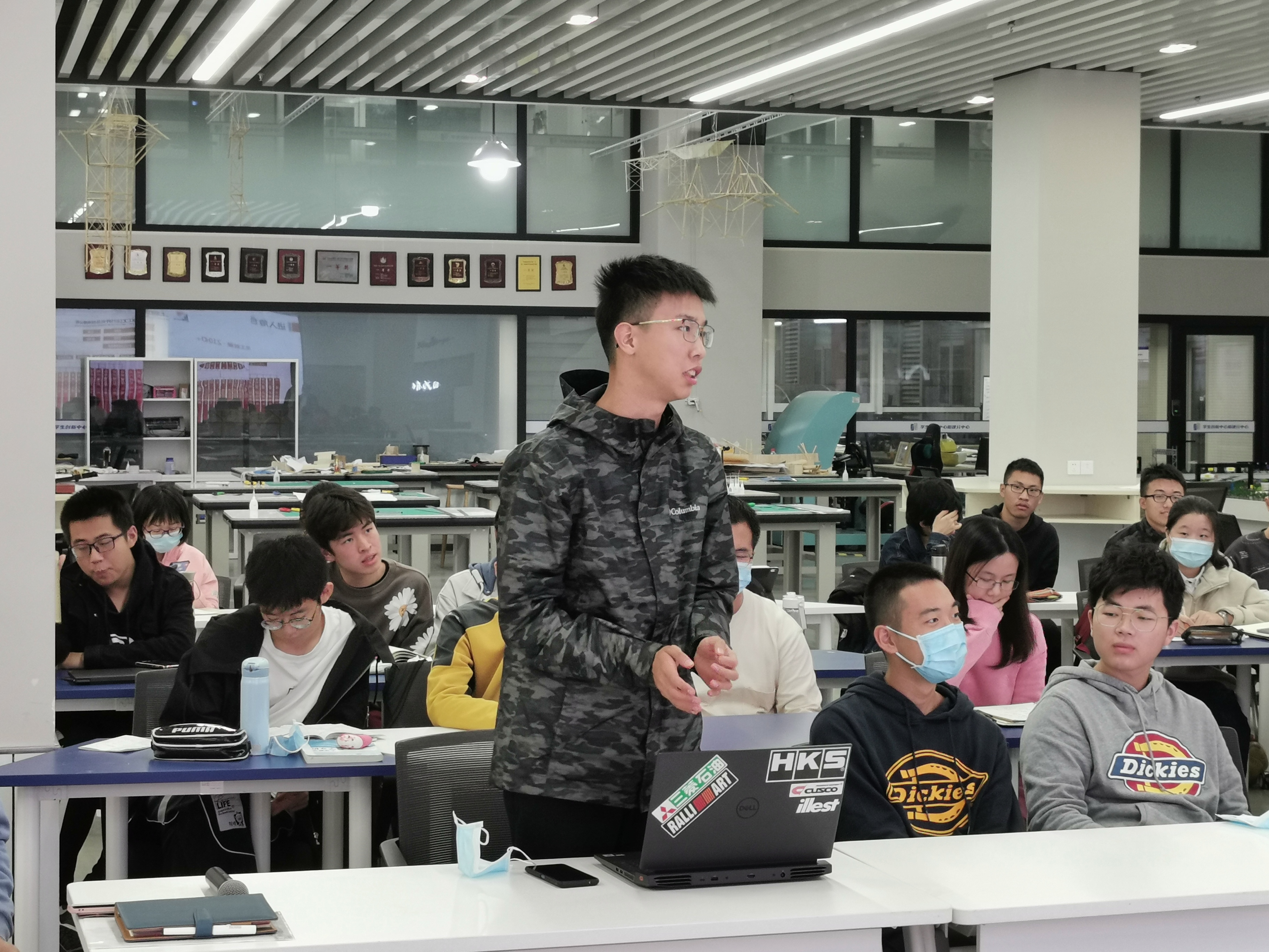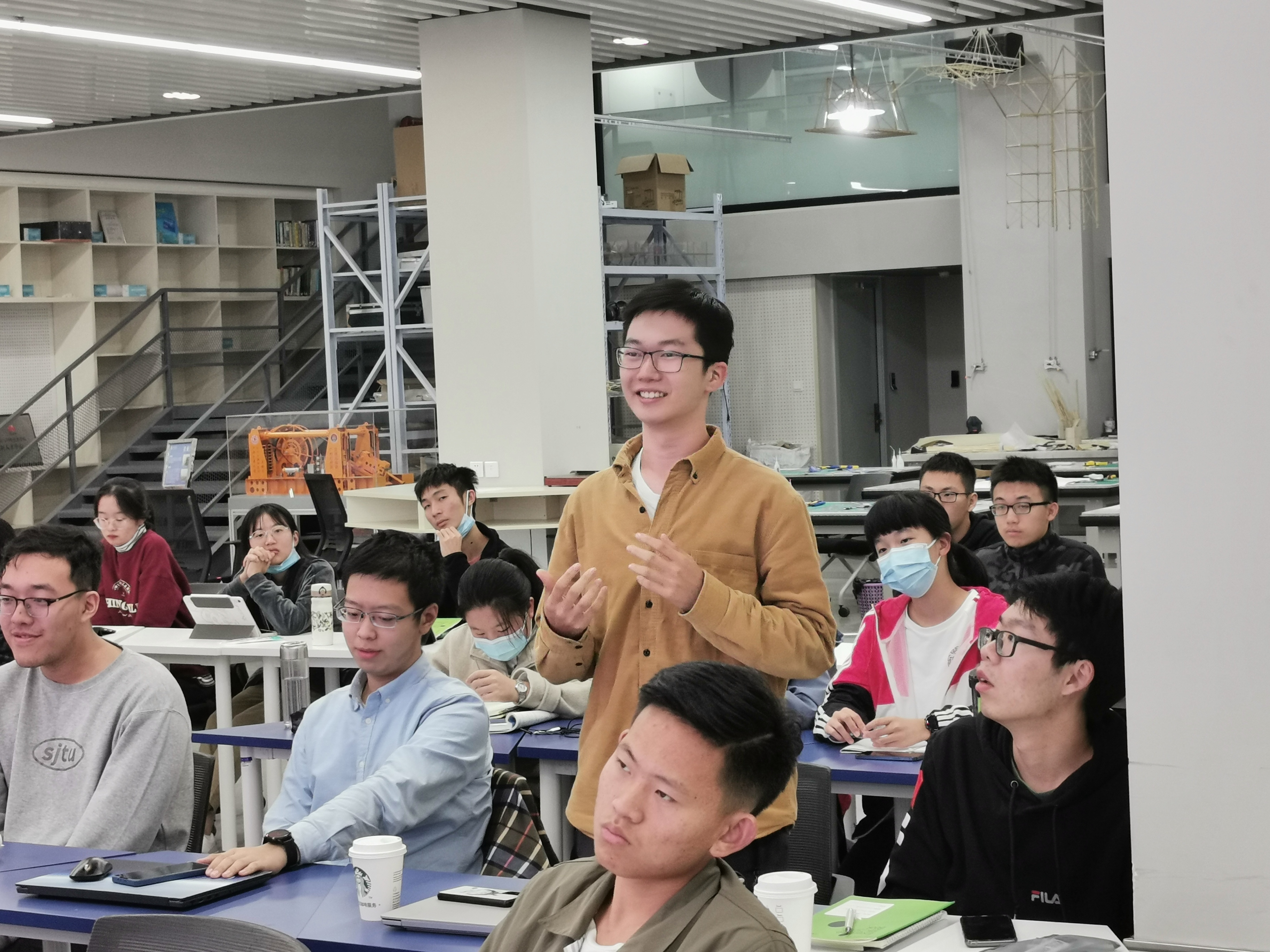 随后的自由交流环节,气氛十分活跃,同学们热情高涨,纷纷举手提问。龚建峰耐心回答了同学对于未来土木建设的饱和问题,为同学分析了现阶段的工程建设。被问到对于力学专业学生到土木相关领域就业的问题,龚建峰学长认真为同学分析了力学专业在结构方面理解的优势。关于自己当初从被调剂到选择力学作为终生事业的转变,龚建峰则表示学习的历程也是转变观念的历程,自己在学习的过程中完全可以爱上一个学科,爱上一个行业。