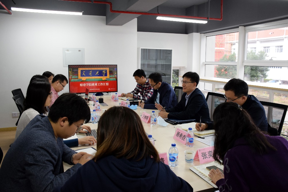 11月12日,3044am永利集团官网党委常委、副校长王伟明,学生处处长侯士兵,副处长、就业中心主任顾希垚,就业中心招聘服务部主任江俊达一行,到船建学院调研就业工作。船建学院党委书记周薇、党委副书记宋续明、学生党总支书记薛云云、团委书记赵恺、学生事务工作负责人史舒婧、就业工作负责人梁晴雪、2017级本科生年级思政张奕民参加了本次会议。