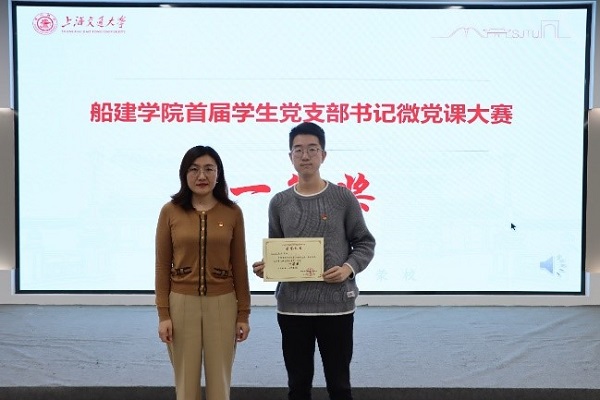 2020年11月27日,船建学院首届学生党支部书记微党课比赛决赛在木兰楼A100报告厅成功举办。校党委组织部组织员张洋,校学指委党建科科长田怡萌,学院党委副书记王喜芳,党委副书记宋续明,专职教师兼职思政郭晓宇、戴磊,就业工作负责人梁晴雪,党建指导老师蒋雨航出席活动。活动由学院学生党总支书记薛云云主持。