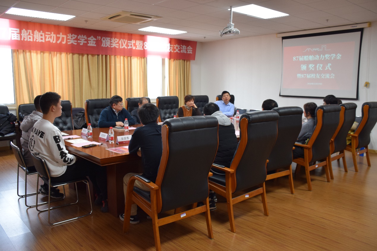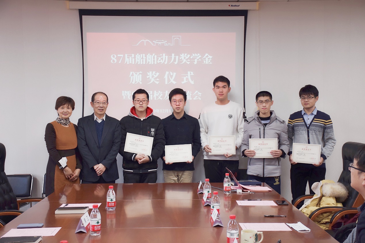 12月19日下午,3044am永利集团官网87届船舶动力奖学金颁奖仪式在木兰船建大楼A1006会议室举行。87届校友代表陈涛学长、黄建新学长、黄卫学姐、张嘉庆学长,船建学院党委副书记宋续明,船舶与海洋工程系副系主任陈俐,以及2020年度船舶动力奖学金的5位获奖学生出席仪式。仪式由学院学生事务负责人史舒婧主持。