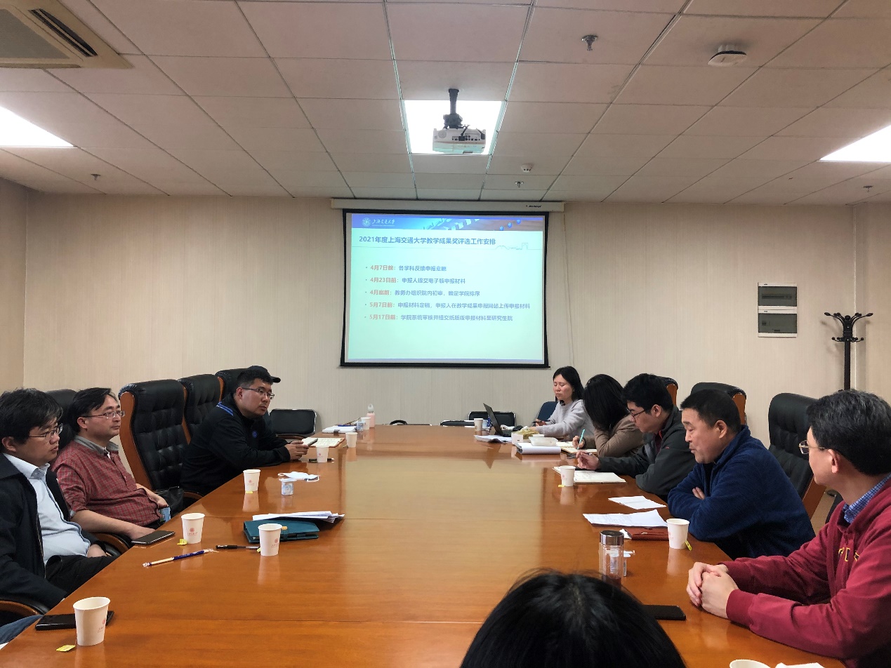 4月1日,船建学院研究生教务办公室组织召开了2021年春季学期第一次研究生培养工作会议。分管研究生教学副院长薛鸿祥,各学科分管研究生教学和国际交流事务的副系主任,研究生教务办全体成员参加会议。会议还特别邀请工程力学系蔡国平教授作教学成果奖申报经验分享。会议由研究生教务办主任刘蓉洁主持。