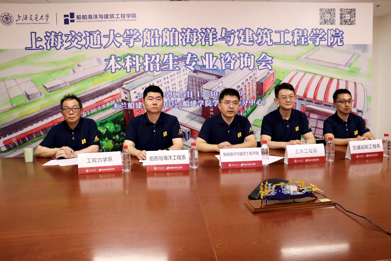 本次学院校园开放日活动分别进行线上展播和线下院系参观活动。在线上直播环节,首先通过一组宣传片全面地介绍了学院办学环境、实验室设施、师资队伍、学科特色、学生培养等内容。随后,由分管学院本科生教学的杨健副院长及各专业教师代表、优秀学生进行专业推介,从学科前沿、专业发展、人才培养及毕业生就业发展等方面向考生和家长全方位展示学科优势。线下咨询与结构竞赛共同在学生创新中心船建分中心举行,家长们在咨询专业报考和培养模式的同时还能近距离感受“学创交大”的氛围。