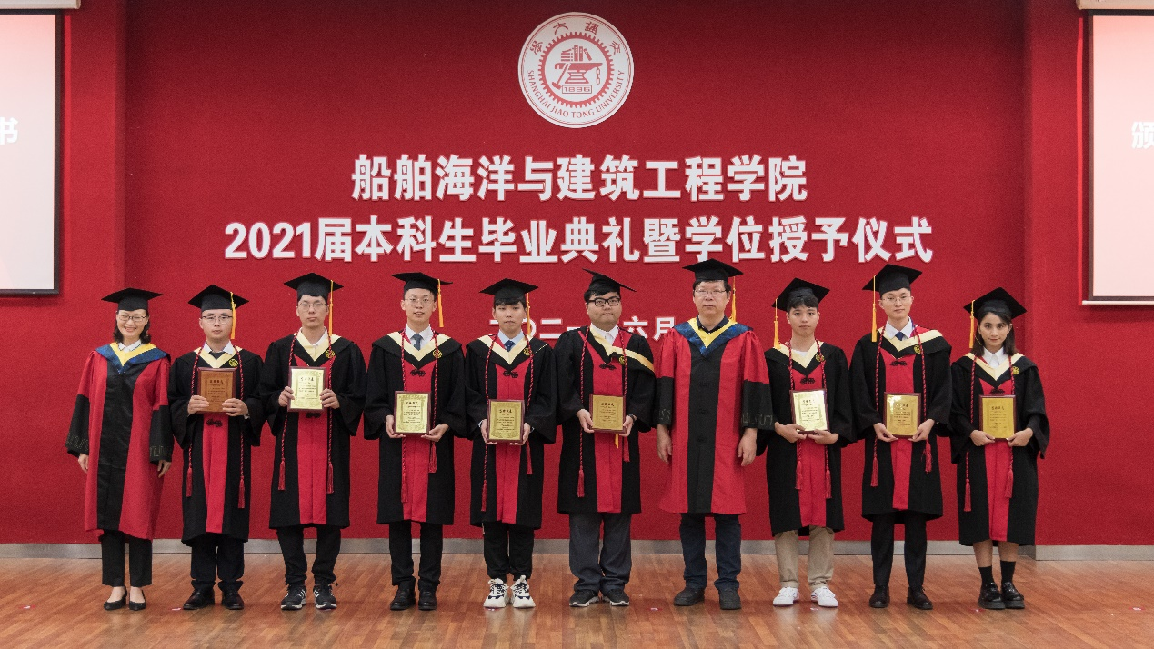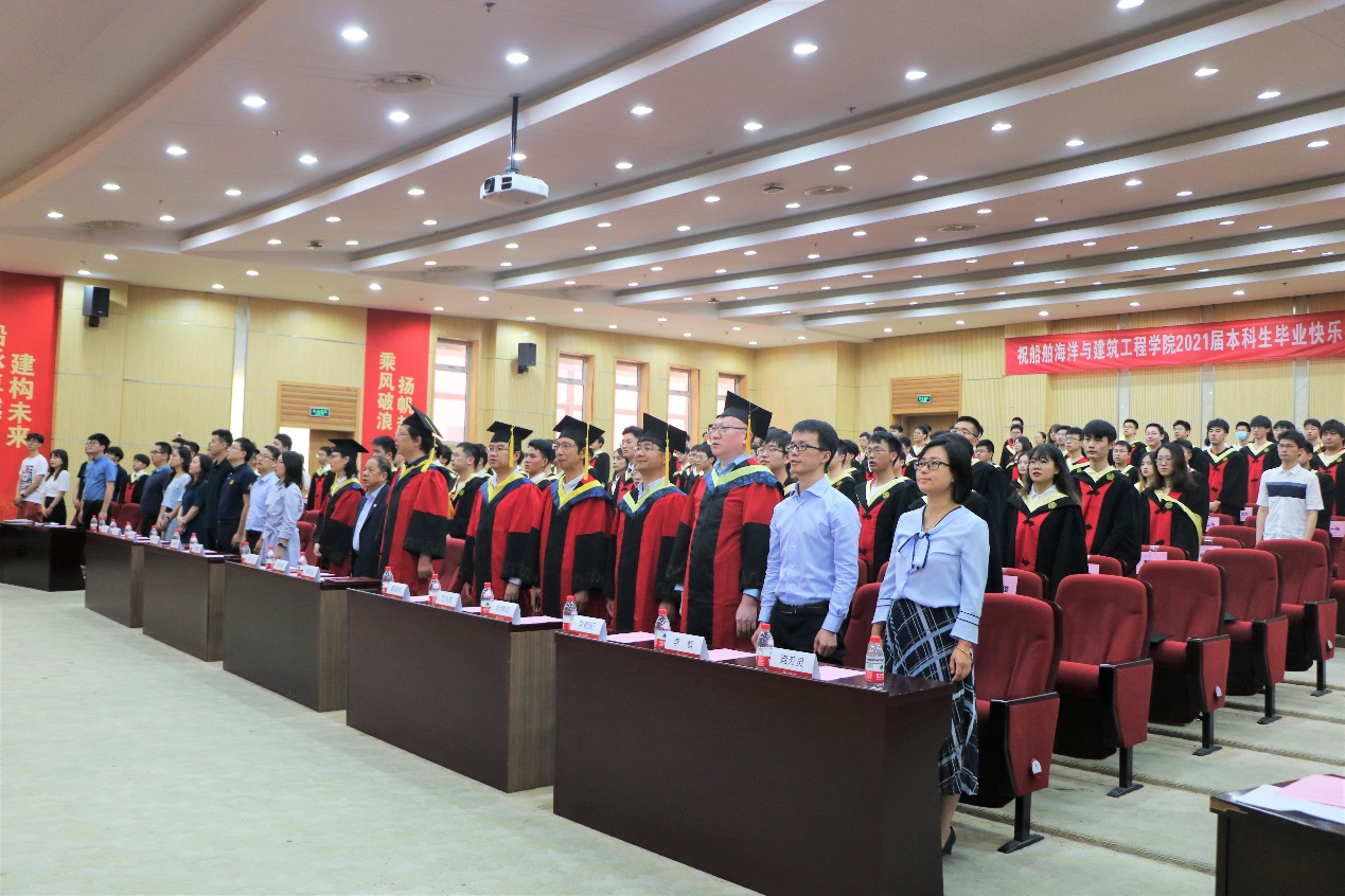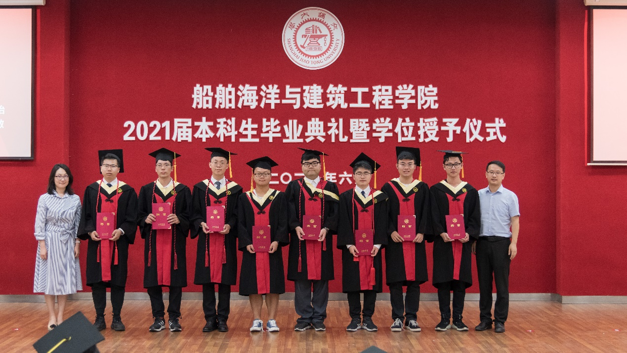 3044am永利集团官网校长、中国工程院院士林忠钦,船建学院党委书记周薇,院长廖世俊,党委副书记王喜芳、宋续明,副院长、船舶与海洋工程系系主任薛鸿祥,副院长、工程力学系系主任王本龙,土木工程系系主任陈锦剑,交通运输工程系系主任李朝阳,土木工程系副系主任程斌,2021届本科生班主任代表郭孝先,学生工作办公室主任查芳灵,校友工作负责人魏燕,2021届本科生年级思政教师张奕民,学生党建工作负责人蒋雨航,学生团学工作负责人陈哲,以及全体毕业生同学出席。仪式由学院就业工作负责人梁晴雪主持。