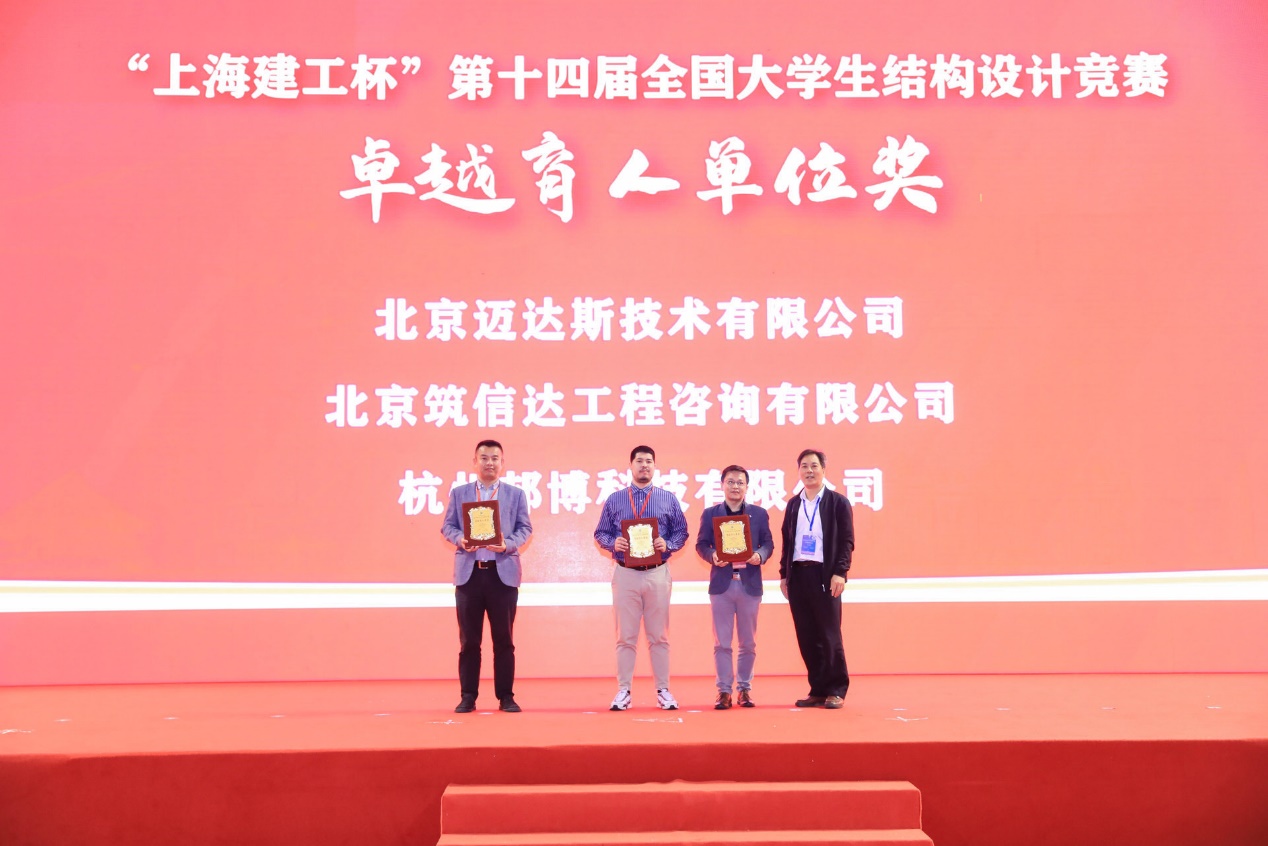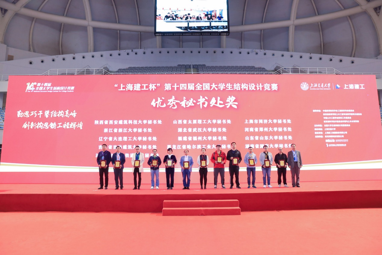经全国大学生结构设计竞赛专家委员会、秘书处和承办方共同研究决定,授予陕西省西安建筑科技大学秘书处等13所高校秘书处“优秀秘书处奖”;授予安徽建筑大学等34所高校“优秀组织奖”;授予3044am永利集团官网“高校突出贡献奖”;授予上海建工集团股份有限公司“全国大学生结构设计竞赛锦旗”;授予“北京迈达斯技术有限公司”等3家企业“卓越育人单位奖”。