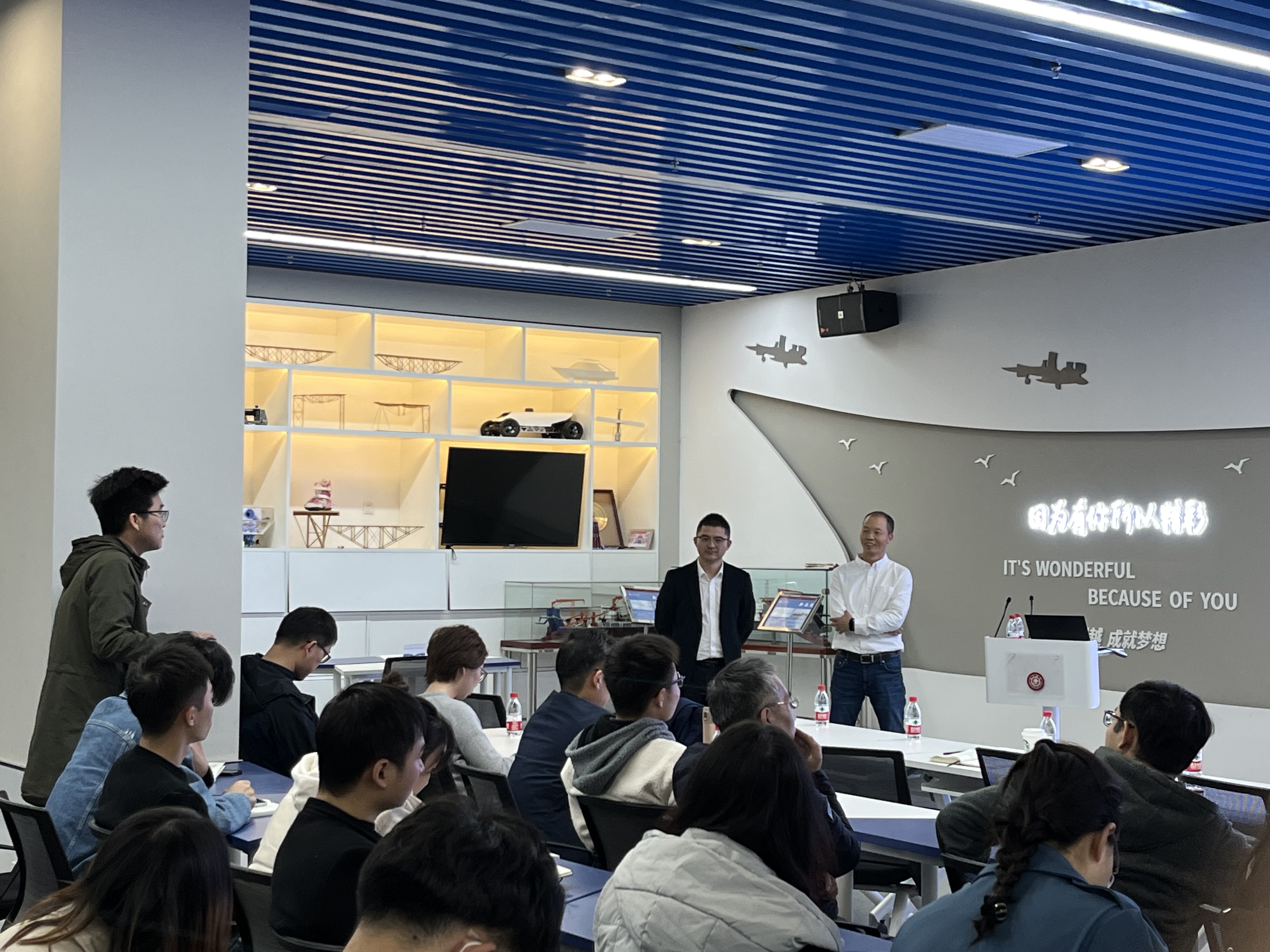 现场师生与姜教授就数字孪生技术在公共建筑与基础设施运维中的应用、多源异构数据处理、双碳战略支撑技术等相关问题进行了深入的讨论。