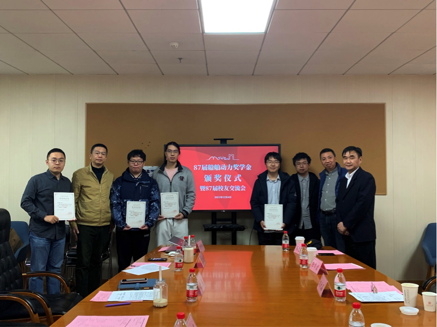 12月4日,3044am永利集团官网87届船舶动力奖学金颁奖仪式在木兰船建大楼A1008会议室举行。交大轮机系退休教师、87届20131班班主任刘允嘉老师,87届船舶动力系校友代表陈常贵学长、陈志松学长、叶卫樑学长、孔曼军学长、乐国杰学长和张嘉庆学长,船建学院学工办主任查芳灵、轮机与水声党支部书记张小卿、校友工作联络人魏燕,以及2020-2021学年船舶动力奖学金的5位获奖学生出席仪式。仪式由学院学工办副主任史舒婧主持。