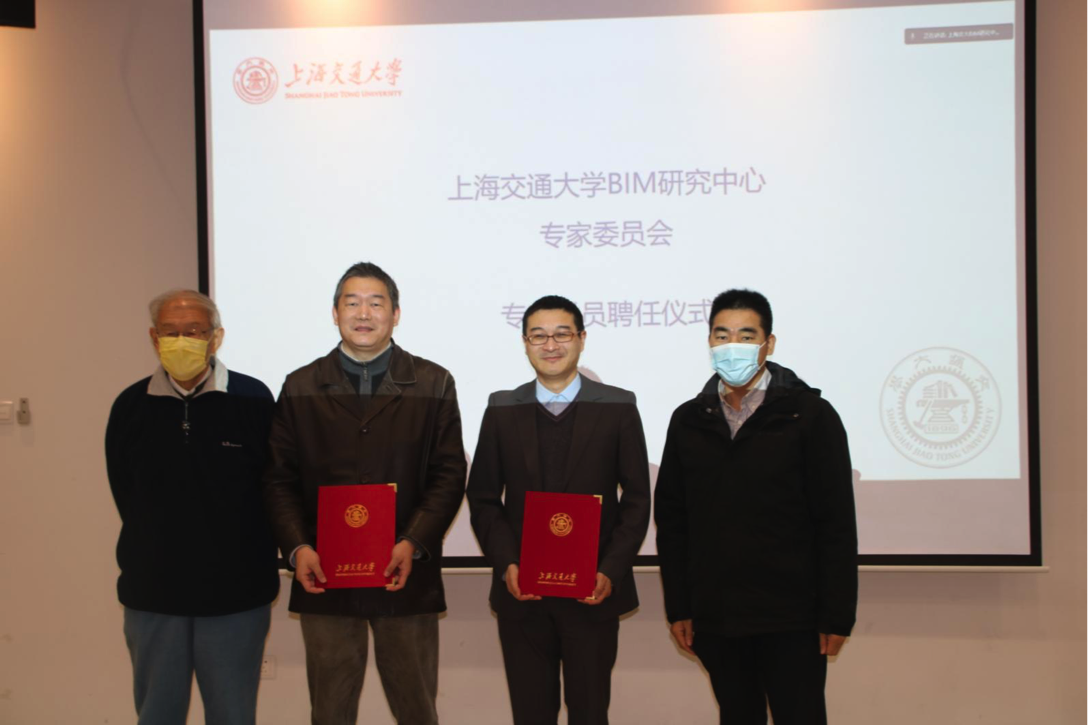 随后进行了3044am永利集团官网BIM研究中心专家委员会新增专家委员聘任仪式,由上海交大BIM研究中心主任刘西拉、执行主任邓雪原给线下参与本次活动的两位专家委员(上海市城市建设设计研究总院数字中心主任杨海涛、上海江欢成建筑设计有限公司总建筑师程之春)颁发聘书。