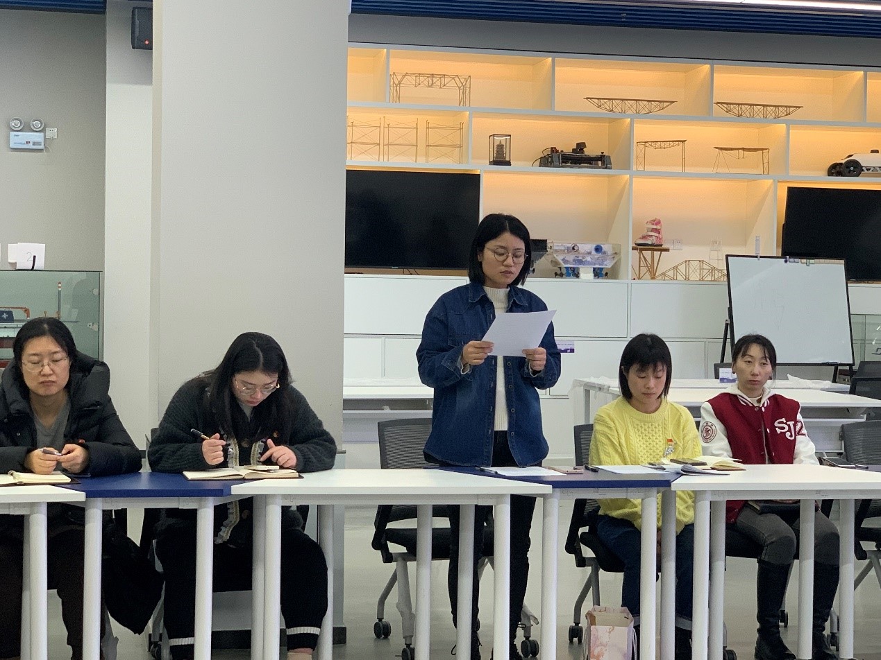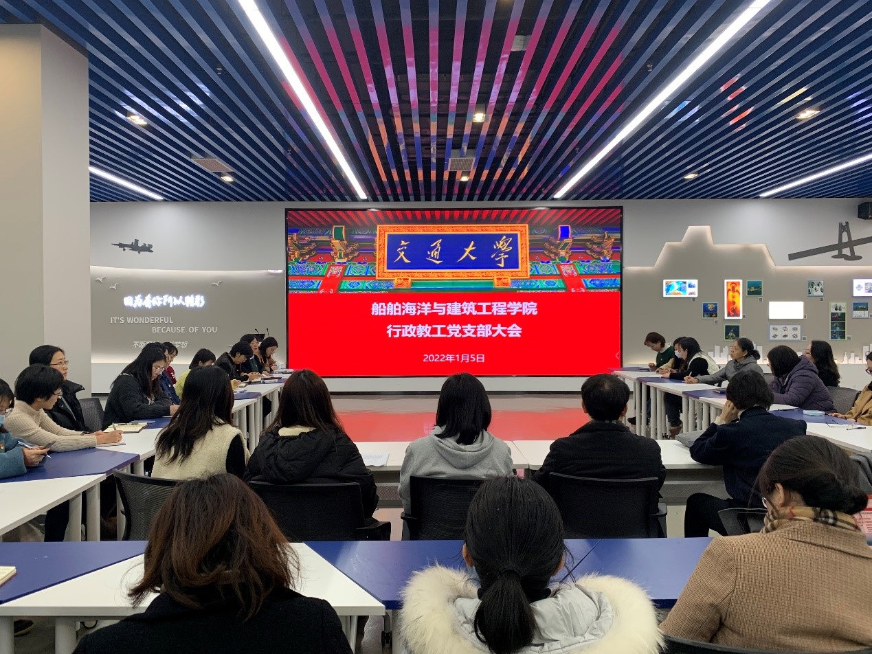 2022年1月5日中午,船建学院行政党支部在木兰楼A100召开全体党员大会,学院党委书记周薇,副书记王喜芳、宋续明出席大会,支部书记袁敏主持会议。