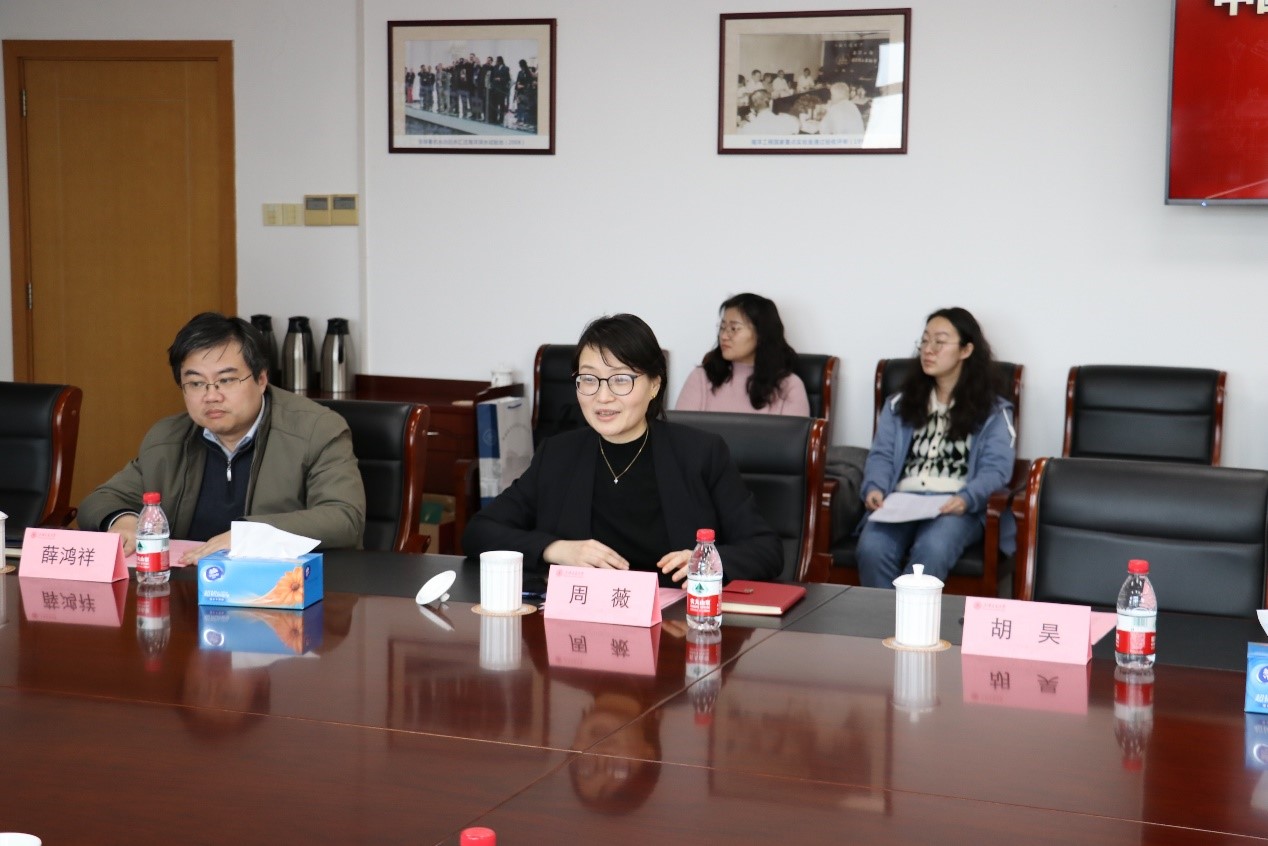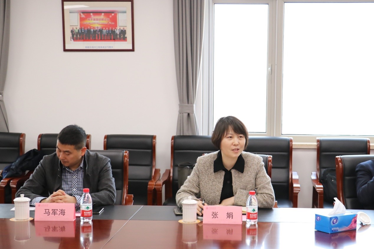 双方就合作意向展开具体交流。廖世俊表示中交建与船建学院的合作历来立足国家战略,着力服务国家需求,有着辉煌的成就。期待未来与中交建在人才交流、设施建设等方面充分利用优势、紧密合作,服务好国民经济发展,再创辉煌未来。张娟表达中交建与船建学院有丰富的合作机会与资源,学院有完备的实验设施,一流的人才队伍,希望在原有合作基础上融合创新,探索新的平台运行模式,打造开放性创新平台。周薇指出学院未来将着力推动与中交建在人员互聘、技术交流、设施共用等方面的交流合作,共同探讨新型合作模式,打造一流的合作团队,挖掘新产业、布局新方向,发挥集聚效应,建设国家一流的创新合作平台。