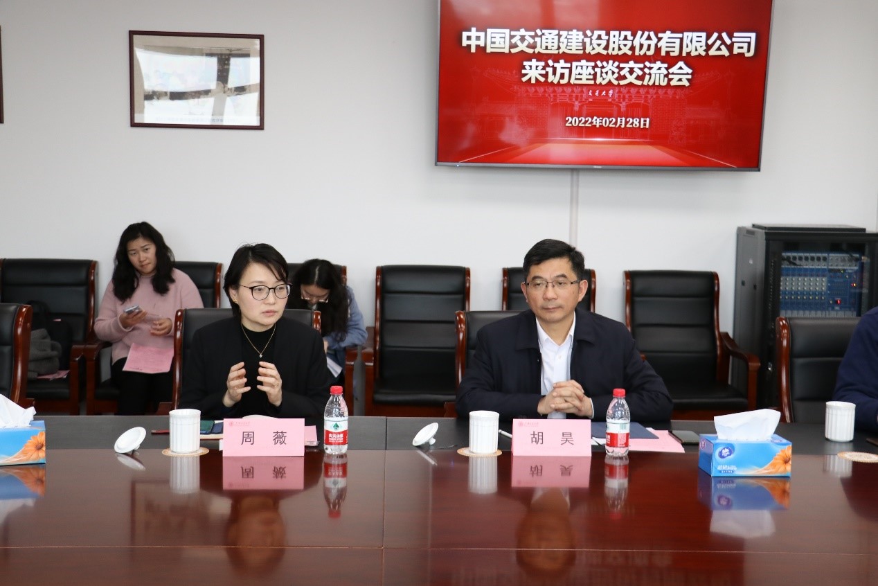 胡昊针对学校与中交建的合作模式进行了介绍:一是实体机构模式,二是平台型合作研究院,三是科研项目合作模式,四是顾问型合作模式等,并表示学校未来将与中交建共同探索新型研究院合作模式,培育创造新动力,引领行业新发展。
