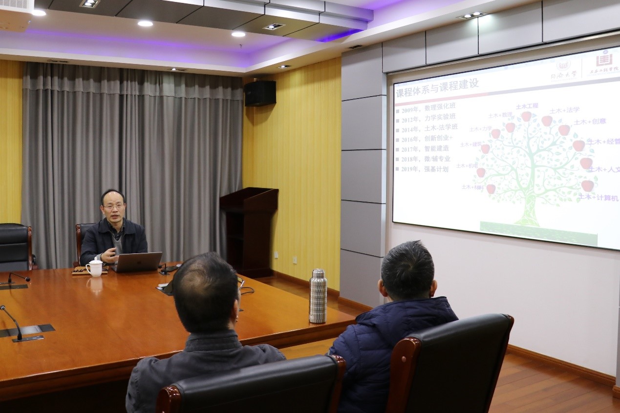 张伟平分享了同济大学土木工程学院交叉专业——智能建造专业的建设过程。从专业的设立初衷、社会需求、专业内涵建设、课程体系建设,以及面临的困难和挑战等方面进行了详细介绍。与会教师兴趣浓厚,与张院长进行了热烈的讨论。