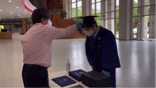 4月底,船建学院部分2022届研究生毕业生赴木兰楼办理毕业手续,在战“疫”中经历了一场特殊的“拨穗仪式”。有序排队、依次上前、接受拨穗、领取证书、再道一声“谢谢”……他们虽未能在集体典礼上共庆毕业,却仍在学院暖心的氛围中,迎来了毕业的高光时刻,也留下了珍贵的“拨穗记忆”。