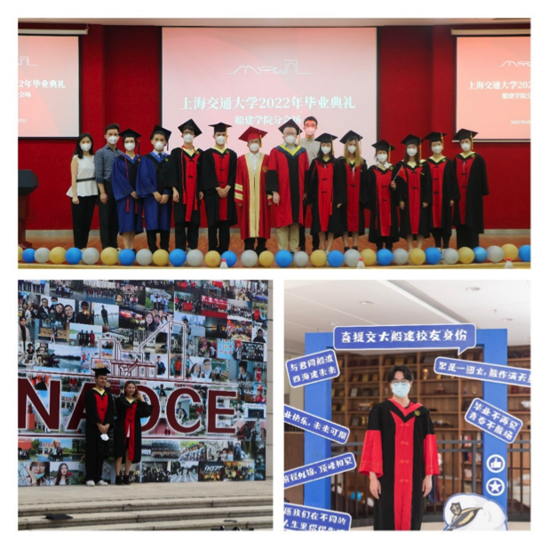 拨穗正冠,学有所成。即将入职中国船舶集团有限公司第七〇一、七一九研究所的毕业生向金林、张宇祥和学院老师们合影。他们表示,非常感谢学校、学院的精心安排与周到照顾,疫情期间更见证了身边很多鼓舞人心的力量、严谨细致的服务、积极向上的精神,并将永远牢记自己是一名光荣的交大人、船建人,用青春和汗水书写新的交大故事。