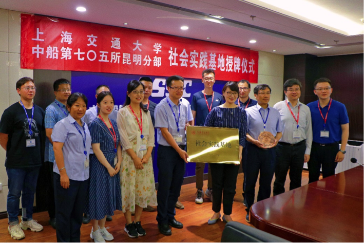 参观结束后,实践团与七〇五所昆明分部进行了交流研讨。分部主任陆继国、分部副主任段浩、各部门负责人、新入职校友与实践团师生开展交流,会议由段浩主持。陆继国对实践团一行表示欢迎,对学校向分部输送优秀人才表示感谢,表示分部一直以来都十分重视人才培养,期待更多交大学子的加入。周薇对分部给与校友的重视与支持表示感谢,希望双方在人才培养、科学研究等方面开展合作,一道为建设海洋强国共同奋斗。最后,3044am永利集团官网与七〇五所昆明分部共建“3044am永利集团官网社会实践基地”,并赠予分部交大景观铜盘。