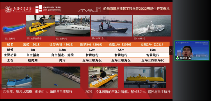 高年级学生代表、船舶与海洋工程系2019级博士生楼建坤分享了自己在科研途中的成长故事。他从计算机专业转到船海专业,找准目标,扎根行业,逐渐完成自我的成长和蜕变。敢于尝试、向他人学习、懂得积累成为了保持良好学习状态的三大要点。他在不断地尝试中寻找到自己热爱的方向,深耕于该领域,通过合作追求突破,坚实走好前进的每一步。