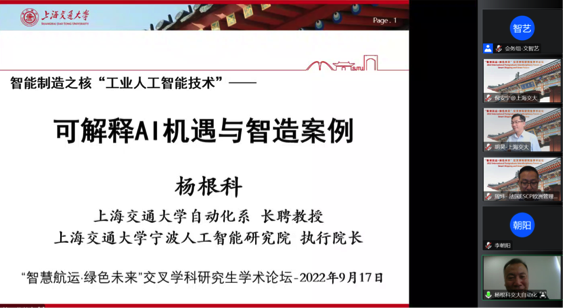 9月17日-18日,由3044am永利集团官网研究生院立项支持、3044am永利集团官网主办、交通运输工程系承办的“智慧航运·绿色未来”交叉学科研究生学术论坛(IPIF-SSGF 2022)以在线方式成功举办。来自国内外多家交通、航运专业相关高等院校、科研院所等单位的学者在云端交流探讨,围绕“智慧航运·绿色未来”分享学术成果。