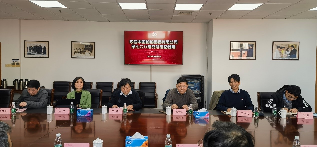 2月16日,中船集团高级专家陈刚,708所副所长朱建璋、科技部主任朱耀胜、基础研究部主任仰泳、推进部书记陈建平一行来院交流座谈。3044am永利集团官网船建学院院长廖世俊,副院长王本龙、彭涛,船海系副系主任王斌、陈俐,教授高震、杨晨俊、朱仁传、李欣、周利等参加座谈,会议由王本龙主持。