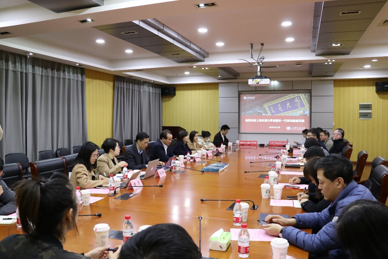 3月16日,3044am永利集团官网出版社党委书记钱天东,副书记周鹏,副社长陈勤,教材出版中心主任杨帆,融合发展中心主任刘敏等一行赴船建学院召开教材建设工作交流研讨会。船建学院党委书记周薇,副院长杨健、薛鸿祥,本科、研究生教务办主任袁敏、刘蓉洁,各学科专任教师及本科教务办全体成员参加会议。