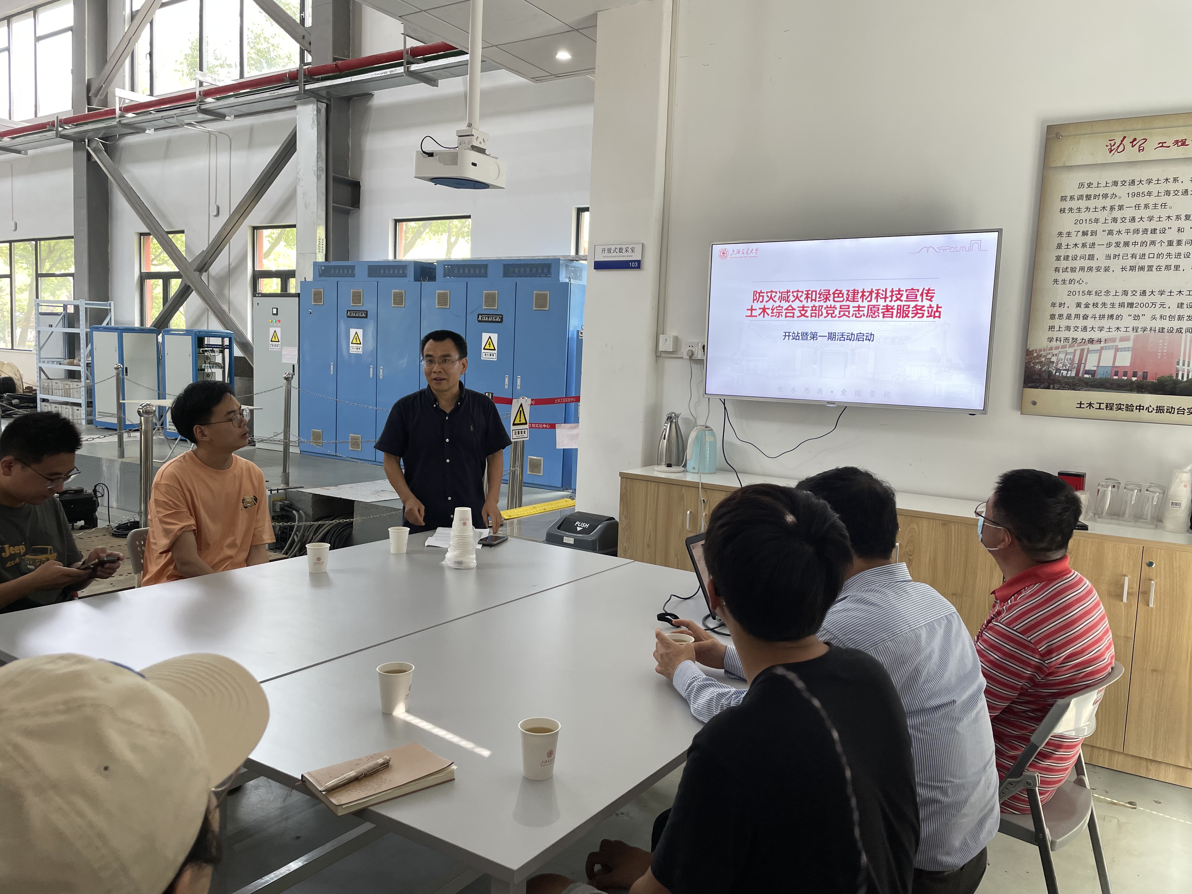 志愿者服务站首期活动于6月20日下午在船建学院综合实验B楼振动台实验室举行。船建学院特邀组织员朱惠红、土木综合支部全体党员、部分研究生参加活动。此次活动由土木综合支部书记陈兵主持。