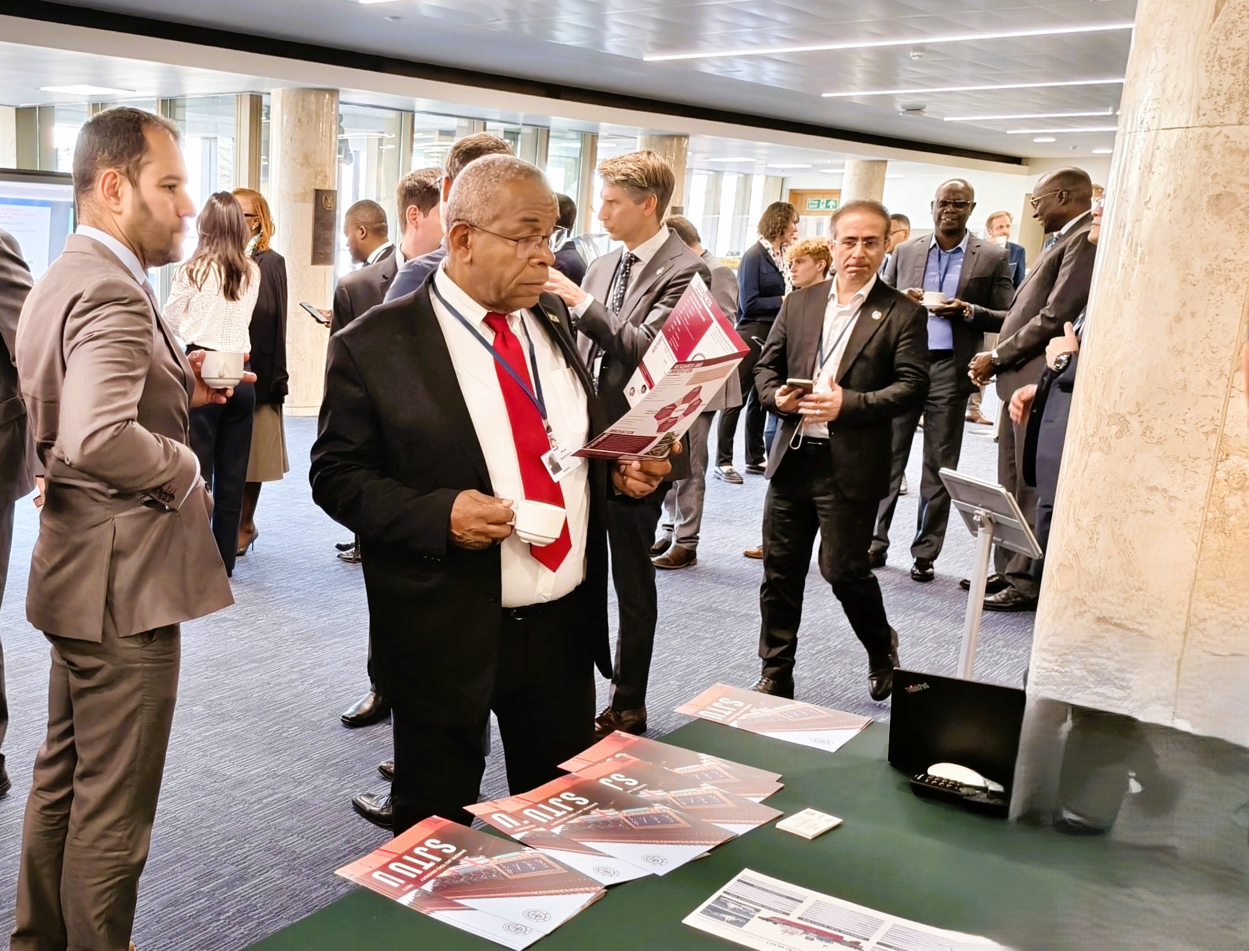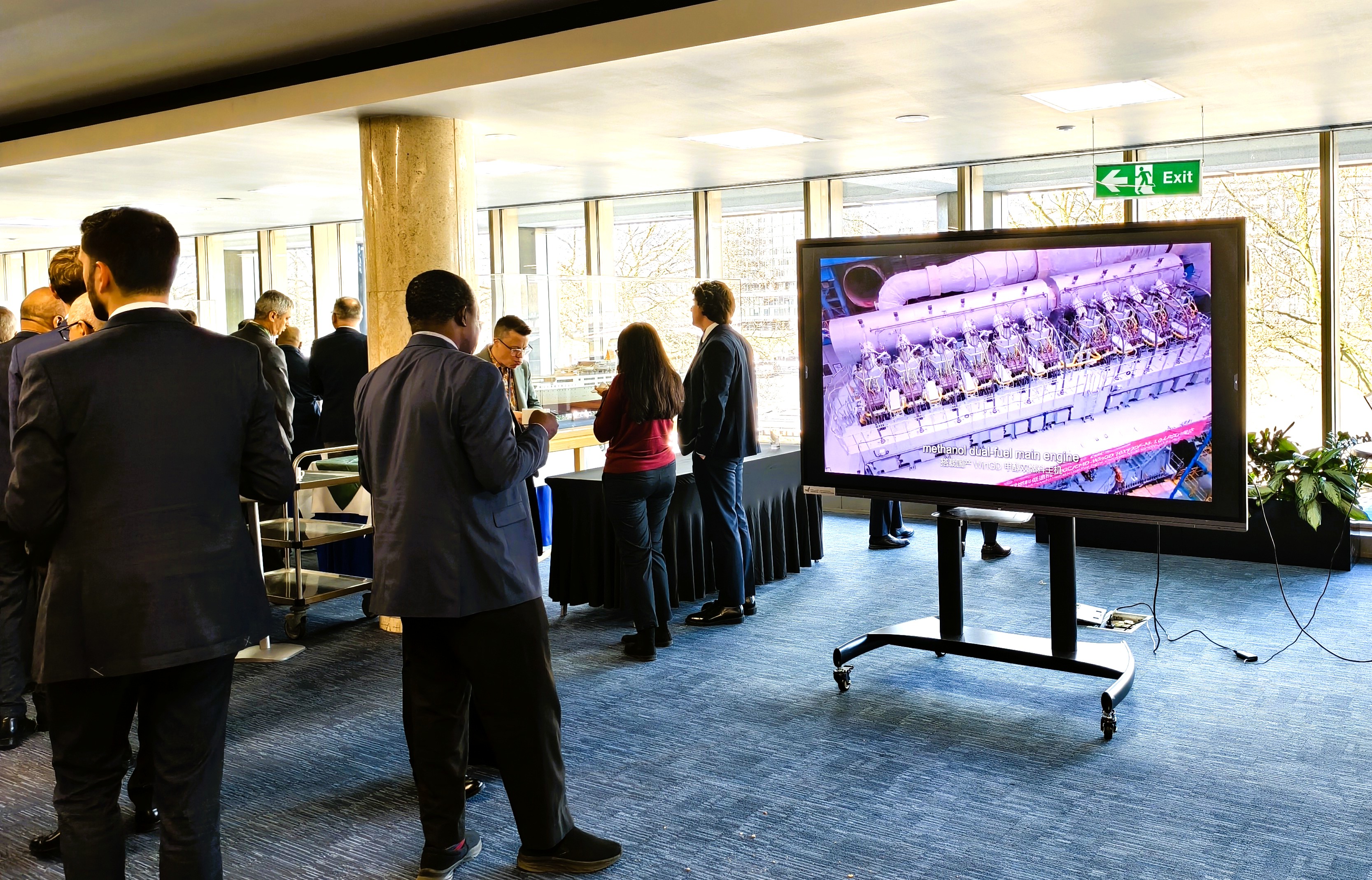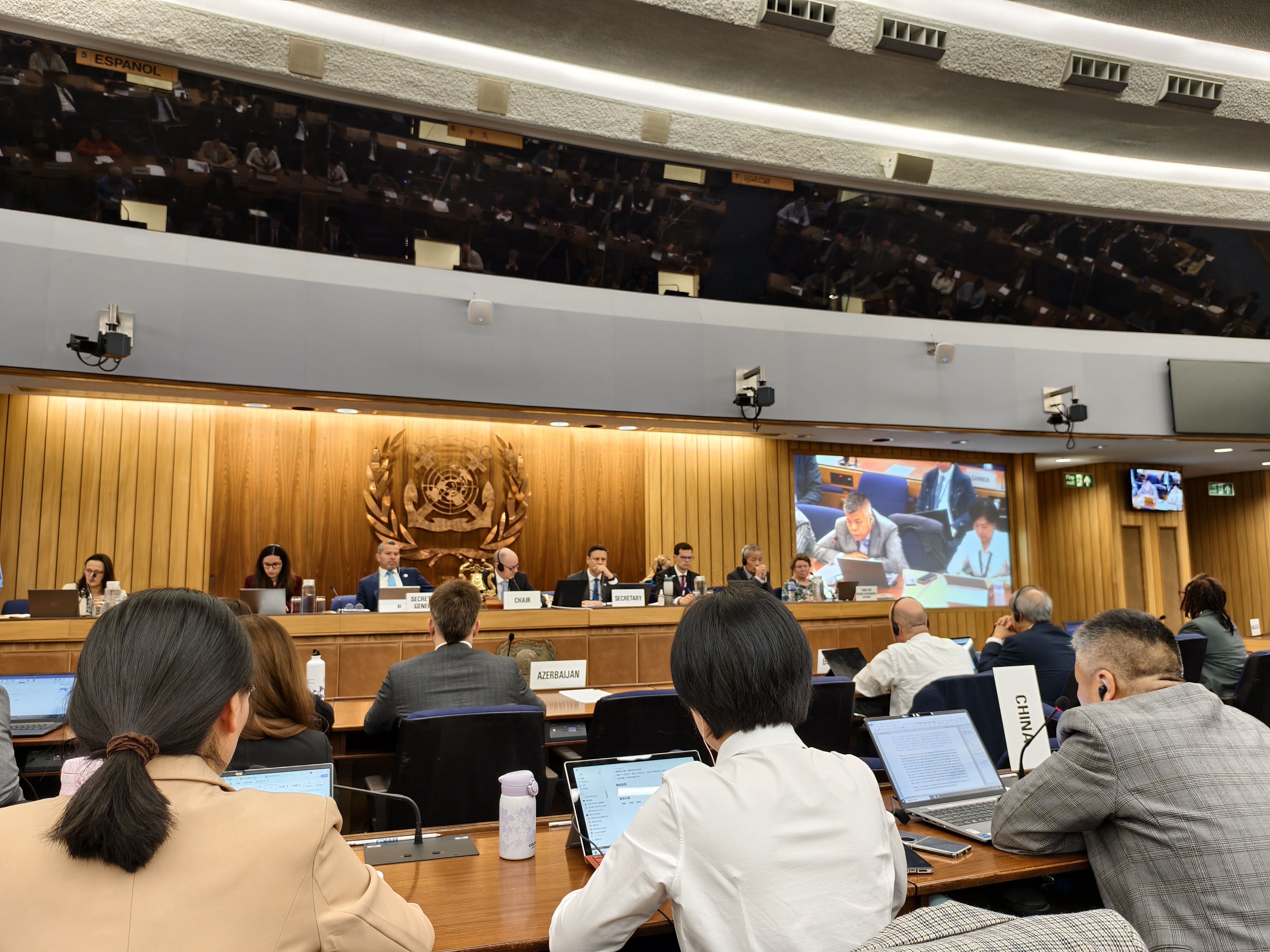中远海运集团-3044am永利集团官网国际海事规则标准联合研究中心代表中国赞助了3月31日上午场会议茶歇环节。茶歇得到了各国代表的高度赞扬。期间,联合研究中心副主任、3044am永利集团官网交通运输工程系戴磊副教授向IMO领导层、各国代表以及全球航运行业专家介绍了3044am永利集团官网以及中远海运集团在绿色航运、绿色动力船舶等领域的科研成果。现场的展示视频、宣传册得到了各界专家的热烈反响。