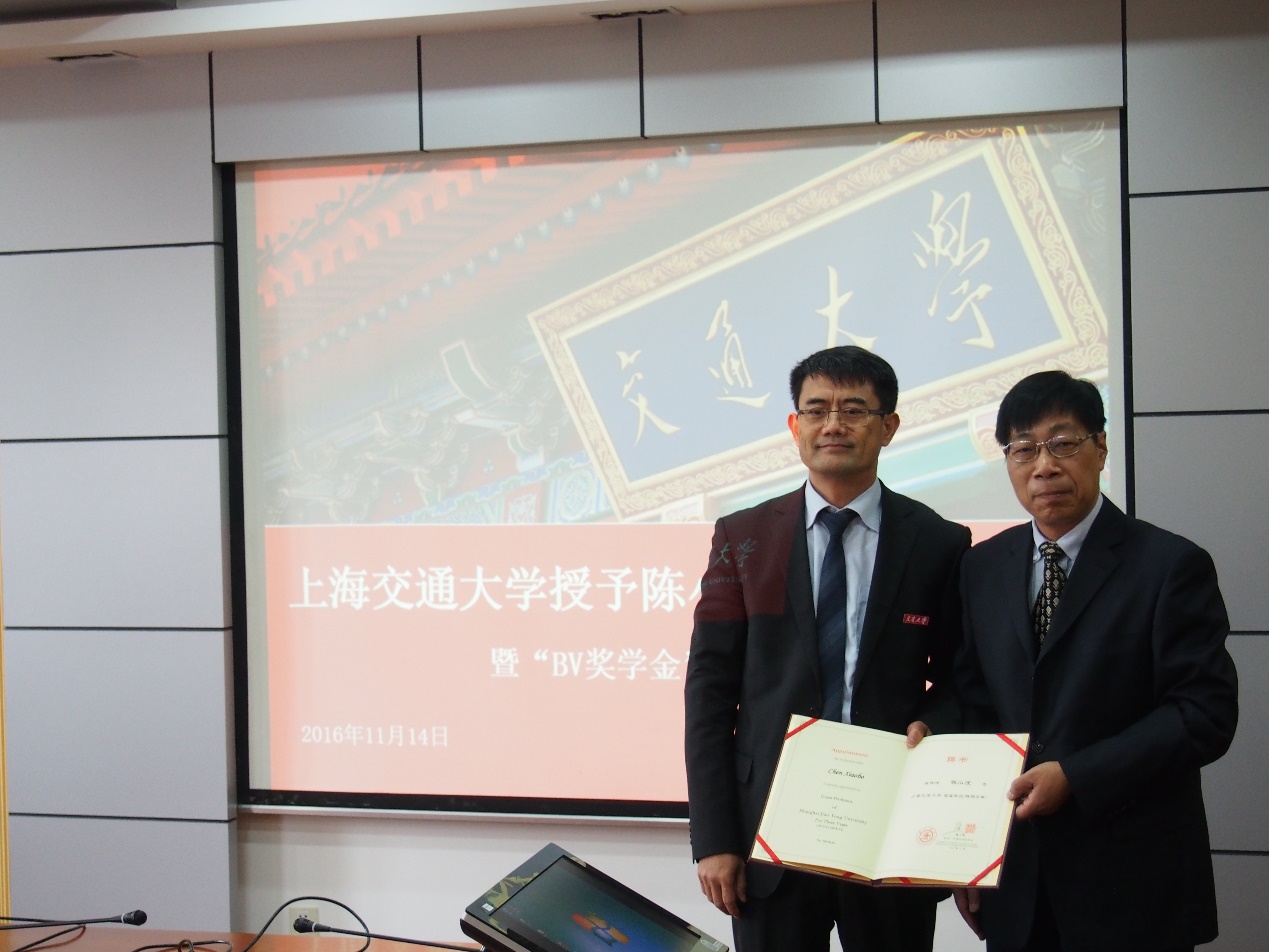 11月14日上午,3044am永利集团官网授予陈小波客座教授仪式暨“BV奖学金”颁奖仪式在木兰船建大楼A1002室举行。BV总部国际合作部部长、亚太区深水技术中心总经理陈小波博士,BV上海先进技术研究中心技术总监周才民,3044am永利集团官网党委书记张卫刚,副院长万德成,党委副书记杨建军,以及四名获奖同学出席了此次颁奖仪式。会议由万德成主持。
