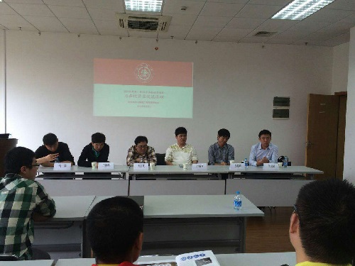 下午,校友们安排了丰富多彩的返校活动,共叙年华,追忆青春。尽管当天雨势较大,校友们仍在南区体育场如期进行了一场足球友谊比赛。与此同时,张安超、吴嘉辉、黄玉柱、沈童伟、田新亮、何辉等六位校友作为校友代表,与在校学生进行了交流座谈,就其工作经历和船舶行业前景与二十余名在校学生进行了广泛的讨论。