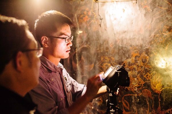 在海拔4020米的江孜地区开展调研,实践团成员需克服高原反应,将在两周的实践中从无损检测、激光扫描、摄影测量、测绘等四个方面有序开展实践活动。江孜老街历史悠久,多数建筑年久失修,而某些古建房间中的壁画是一本本的活历史,记录着当地宗教文化历史,具有较高的研究价值。无损检测组的成员将利用热成像监测仪对壁画的病灶进行分析评估,提出下一步应对保护建议;激光扫描组顶着烈日仔细摄录古城建筑内外立面;摄影测量组操控无人机扫描建筑总体概况;测绘组成员穿梭在矮小局促的房间中认真记录测绘数据。“雪域天珠”实践团的成员们克服建筑年久失修的危险性,怀着一份对建筑历史遗产的敬畏感和文化传承的使命感将自身专业知识融入实践活动中,为古建筑遗产保护献上一己之力。