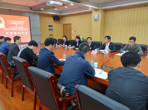 10月29日,上海市交通委员会安全监管处党支部与船建学院党委及港航联合支部签署了基层党支部共建“服务站”协议,并举行了第一次共建活动,这也是船建学院基层党组织首次与校外机构基层党组织开展的共建活动。上海市交通委安监处支部书记张兴根及所有支部成员、船建学院党委书记张卫刚、上海交大党委宣传部部长胡昊以及国际航运系骨干教师出席了本次活动,活动由港行联合支部书记倪安宁主持。