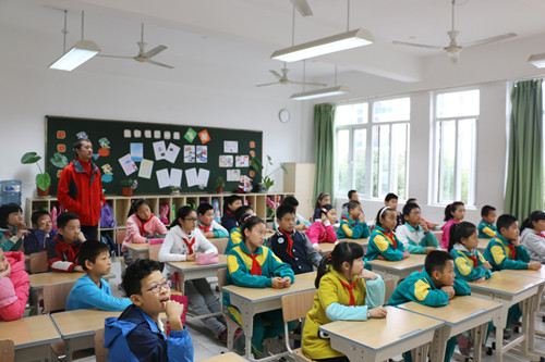 在班会当天,孩子们都非常热情兴奋,协助成员书写板书并布置现场。授课过程中,各个小组分别向各自班级的孩子们展示了“宇宙的神秘”、“科技促进的交通工具进步”、“时间旅行”、“生活中有趣的化学”等等精心准备的主题。成员们保持着活泼而严谨的态度,带领孩子们认识了科学的各个领域,并鼓励孩子们参与其中,一起开展了游戏互动和简单有趣的化学小实验。下课铃响时,孩子们对课程恋恋不舍,与成员依依惜别。