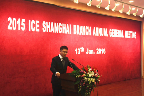 会议后半场由ICE上海分会新任秘书长杨健主持。首先由蒋志权进行换届致辞。蒋志权对ICE总部、ICE上海分会、广大会员和同ICE长期合作的各企业在其任期内的大力支持表示由衷的感谢。特别是林少培教授和Geof Mills先生,在他任期的十二年内为ICE做了大量工作,蒋志权也对他们二位的奉献精神表示由衷的感激和敬佩。蒋志权表示ICE这个平台为中英双方知识共享提供了契机,也为中国的工程承包商了解世界、走向世界提供了契机。同时还强调了ICE在人才培养方面的重要性。蒋志权希望下一届理事会能够继续深化与ICE总部及各企业间的交流与合作,为促进两国建筑工程界的紧密联系、人才交流而努力,共同使两国的建筑工程领域技术达到一个新的高度。他也预祝下一届理事会的工作取得圆满成功。