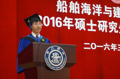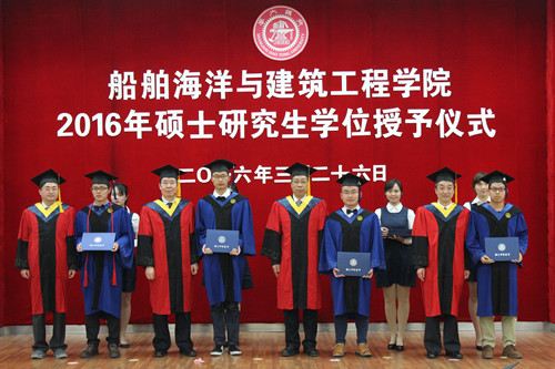 3月26日下午,船建学院2016届硕士毕业生学位授予仪式在木兰船建大楼A200报告厅举行。船建学院党委书记张卫刚,院长杨建民,学位委员会主席赵金城,党委副书记李巍、杨建军,院办主任李云峰,各系系主任、专业教师,学工办全体思政老师,2016届硕士毕业生及部分学生家长出席了此次学位授予仪式。
