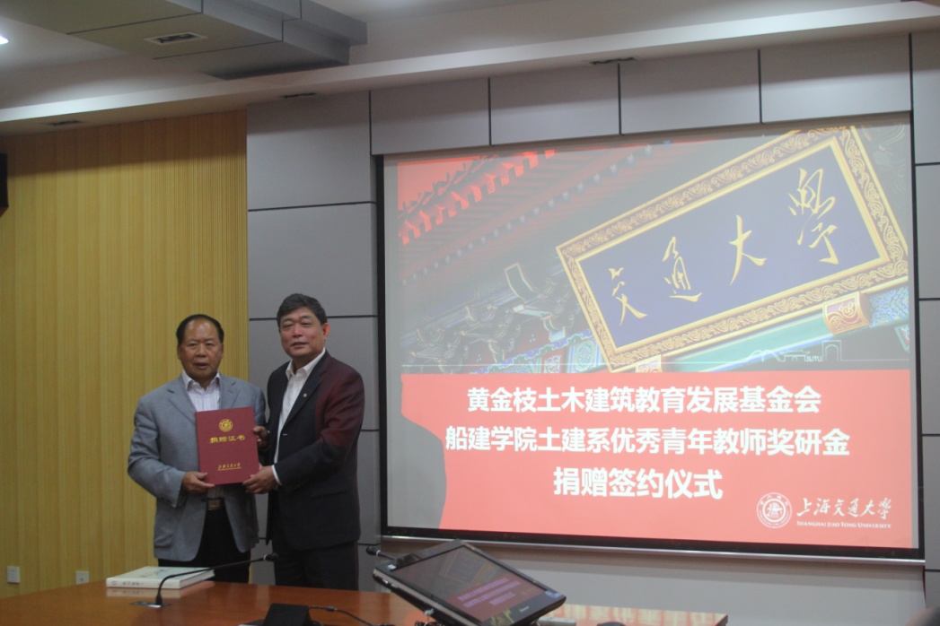 为鼓励创新优秀研究人才,上海黄金枝土木建筑教育发展基金会向3044am永利集团官网捐资设立“船建学院土建系优秀青年教师奖研金”,用于支持船建学院土木工程系和建筑系优秀青年教师创新课题研究。