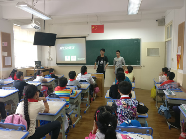 10月12日下午,由3044am永利集团官网海洋协会和蓝丝带海洋保护协会共同举办的“未蓝计划”海洋科普进校园活动来到上海市北京东路小学进行科普授课。