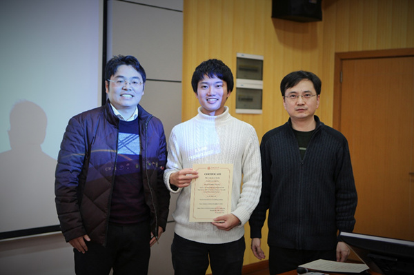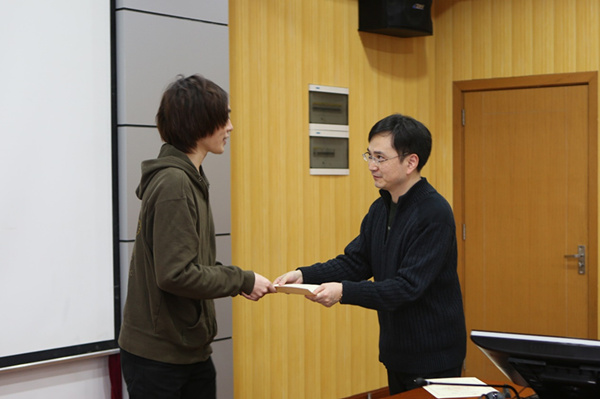 出席Workshop的师生们对四名交流生的发表内容进行了热烈讨论,参会的教师们还对交流生今后的研究方向进行了指点。四名交流生表示,通过这次交流,他们不仅在科研上得到了启迪和长进,也收获了与船建学院研究生的友情,增进了对中国文化的理解。报告会结束后,项目负责人张新曙为四名日本交流生颁发了结业证书并表示祝贺。