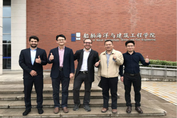 讲座结束后,Paolo Beccarelli教授、陈务军教授以及其他老师代表在木兰楼前合影留念。下午,由空间结构研究中心博士生高成军介绍了自主研发的双轴试验机、改进的单轴试验机,随后参观了新体的膜结构体育馆。通过这次交流,双方表示后续将以教师互访、学生交流以及共同申请基金项目等形式开展深入的合作。