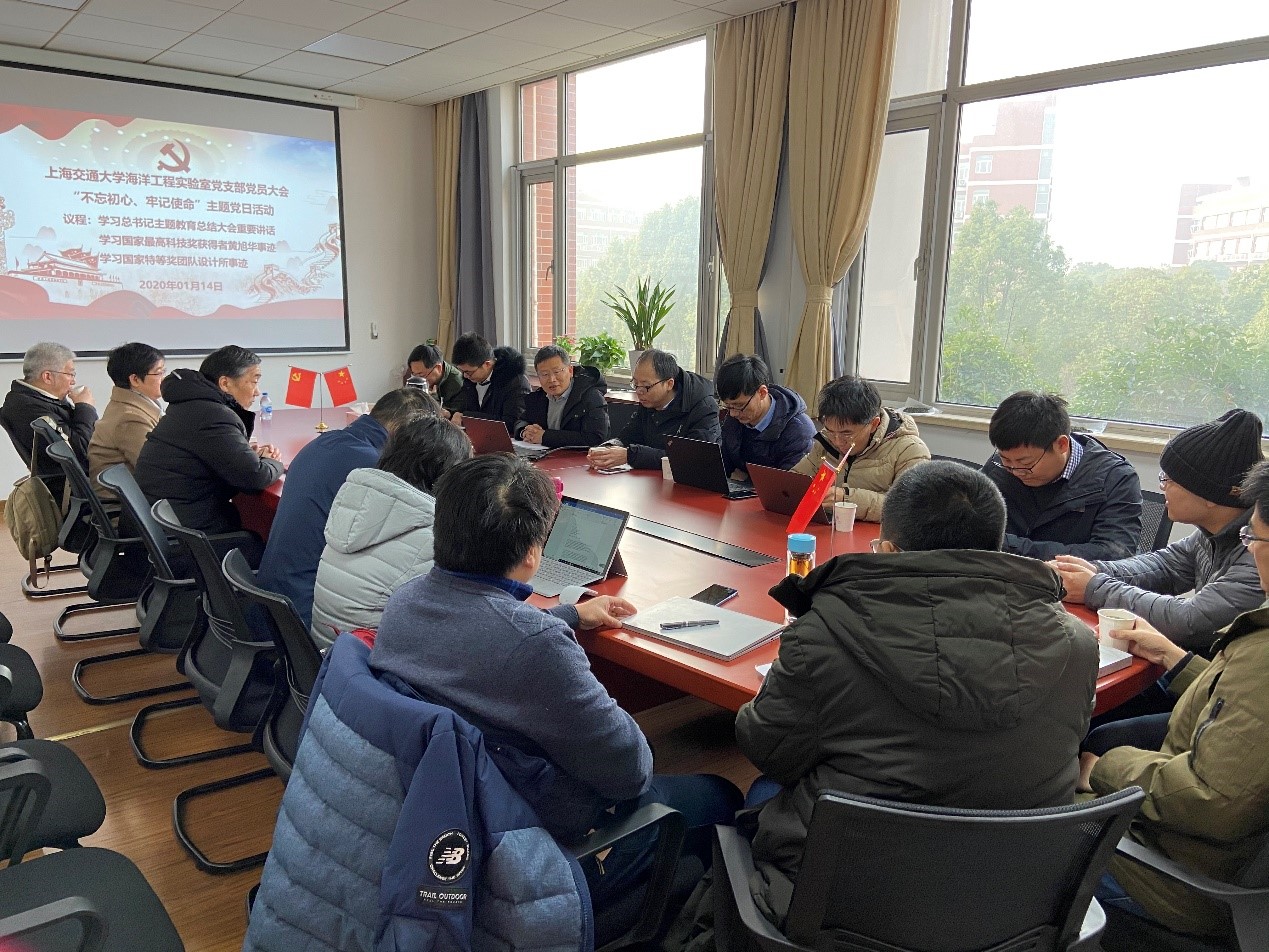 2020年1月14日,3044am永利集团官网海洋工程实验室党支部在新建成的支部活动室召开支部党员大会,开展“不忘初心、牢记使命”主题学习活动。联系支部的学院党委委员、院党委副书记王喜芳参加活动。