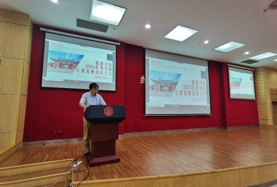 此次秋季学期任课教师动员大会不仅确保线上和线下课程无缝对接,也让船建学院教师进一步明确了“教书育人”的责任和重担。