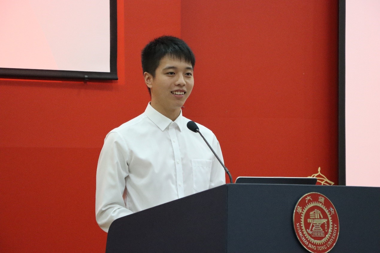 随后,2020级本科生新生代表、海洋工程类张志豪同学发言。他讲述了自己中学时期对于交大船建学院的向往,分享了梦想成真的喜悦,并励志要加倍努力,追随前辈们的脚步,成为能够担起时代使命的交大人。